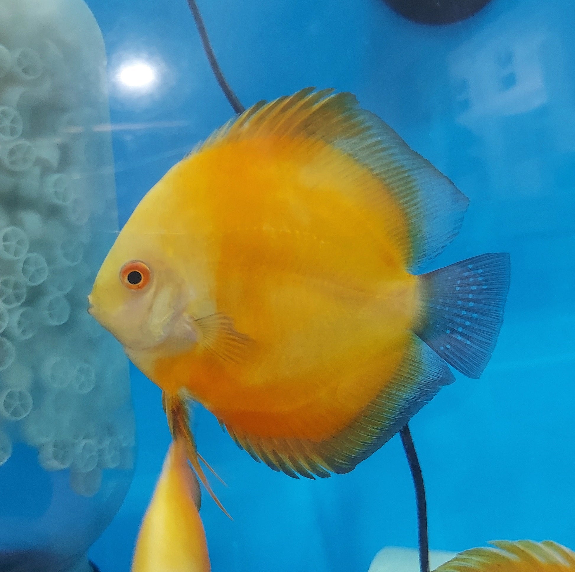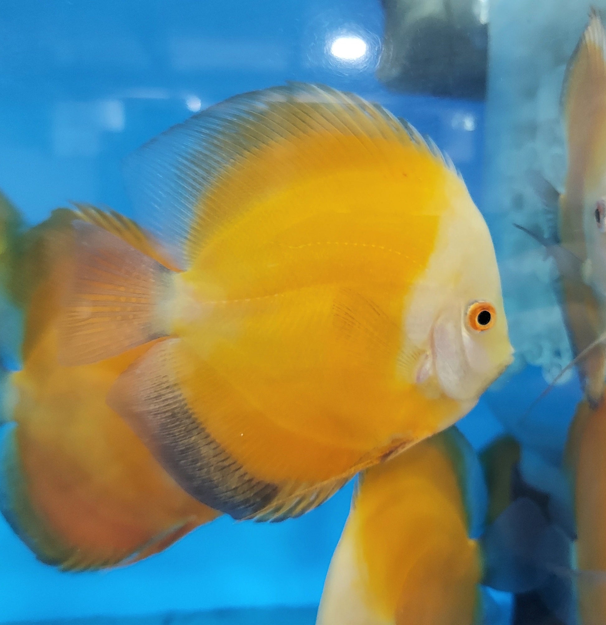 The bright tropical golden sunrise discus fish will add beautiful colors to your home or office freshwater aquarium instantly. Golden Sunrise Discus are derived from the Pigeon Blood strain.